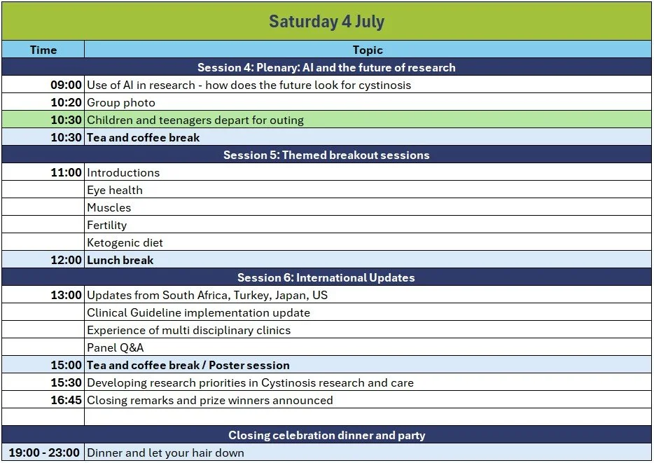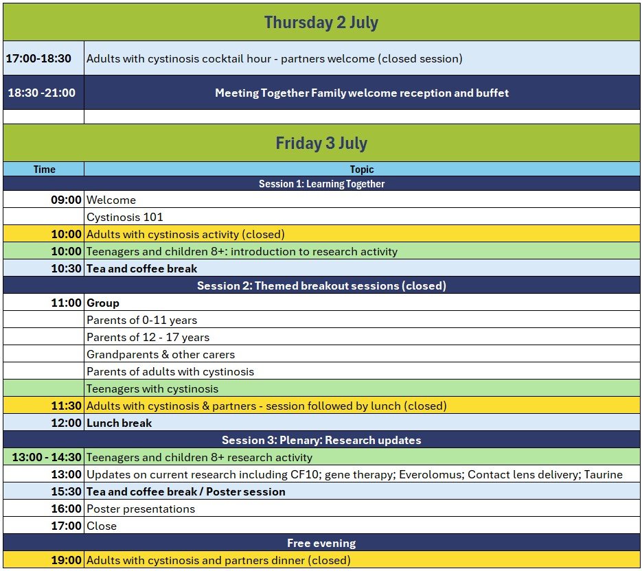 A closed scientific meeting will take place on 2nd July. Please contact denise.dunne@cystinosis-europe.eu for details.
